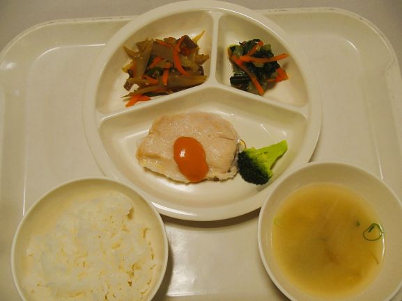 七分つき玄米ごはん・赤魚の生姜煮・高野豆腐の煮物・小松菜の柚子浸し・てまり麩とわかめのすまし汁
