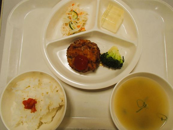 玄米ごはん・和風ハンバーグ・金平ごぼう・ぶどうゼリー・えのきとじゃがいもの味噌汁