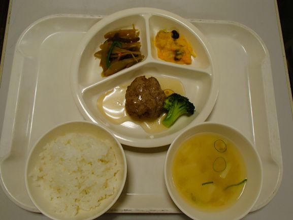 玄米ごはん・和風ハンバーグ・金平ごぼう・ぶどうゼリー・えのきとじゃがいもの味噌汁
