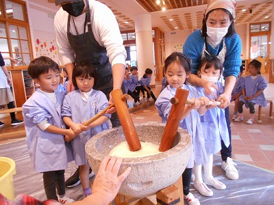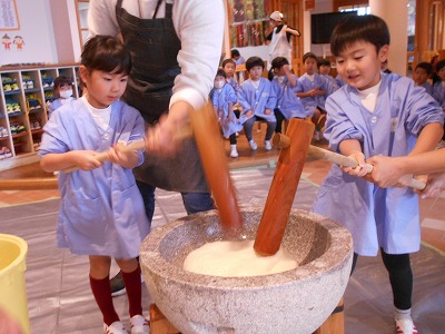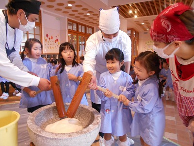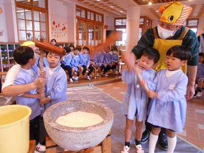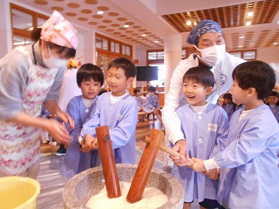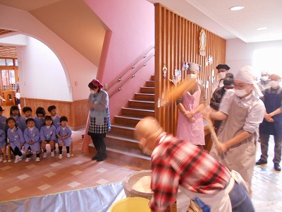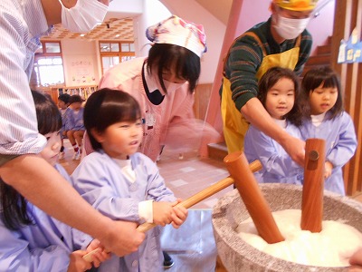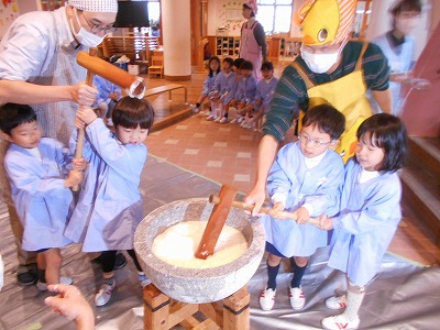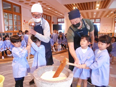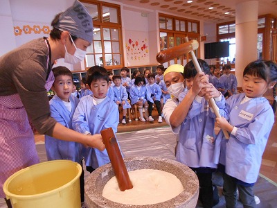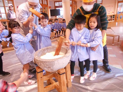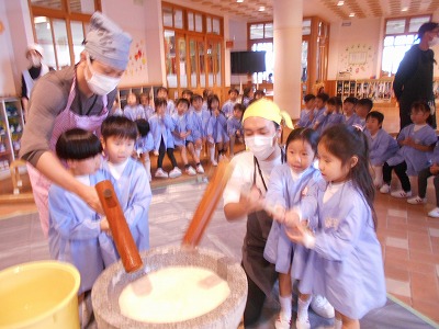 今日は子どもたちが楽しみにしていた「おもちつき」!