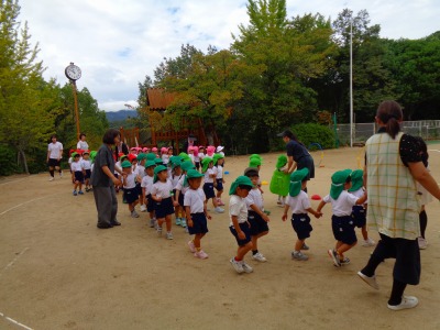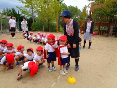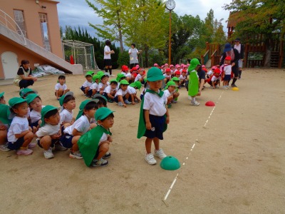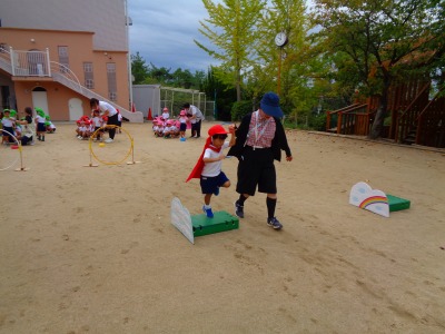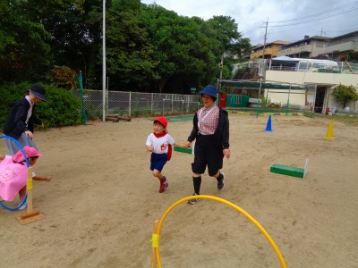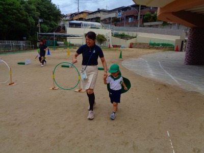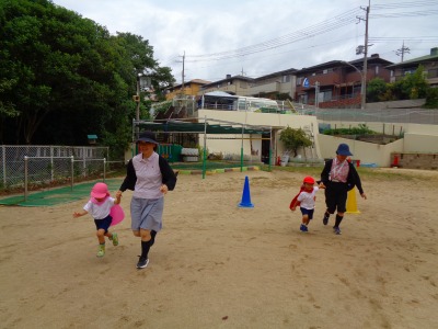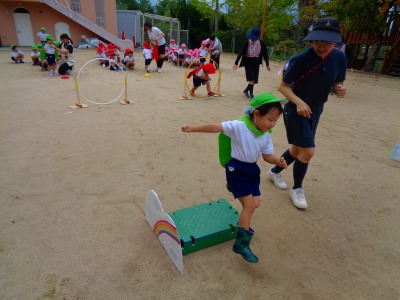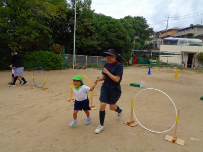 今日は年少組が運動会の親子競技