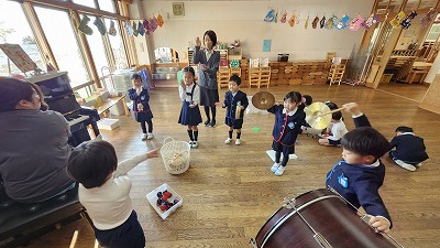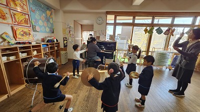 毎日の園内は、どのクラスからも楽しそうな音が響き渡り、子どもたちのわくわくした気持ちが伝わってきます。