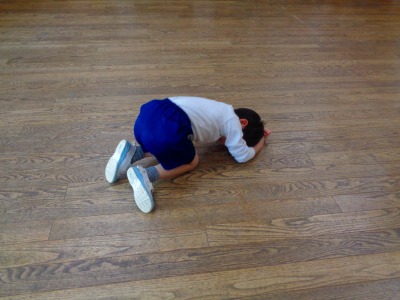 ▼年少組 らっこ組「りすになって葉っぱにもぐってるよ」