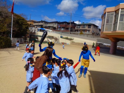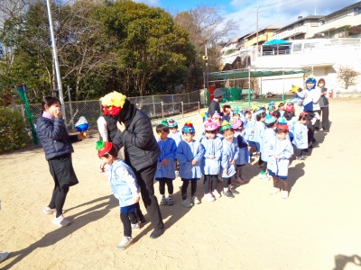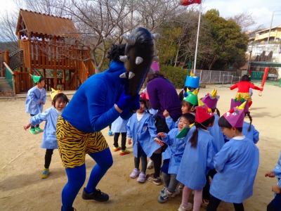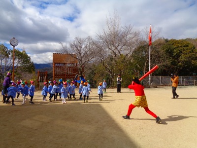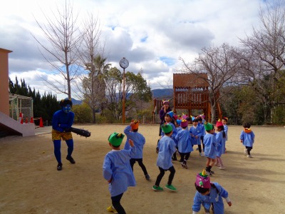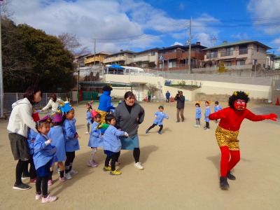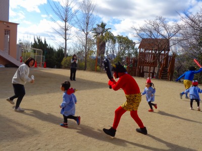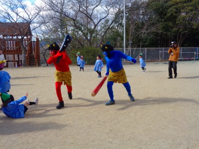 「先生だ~!」と安心して豆を投げていました♪