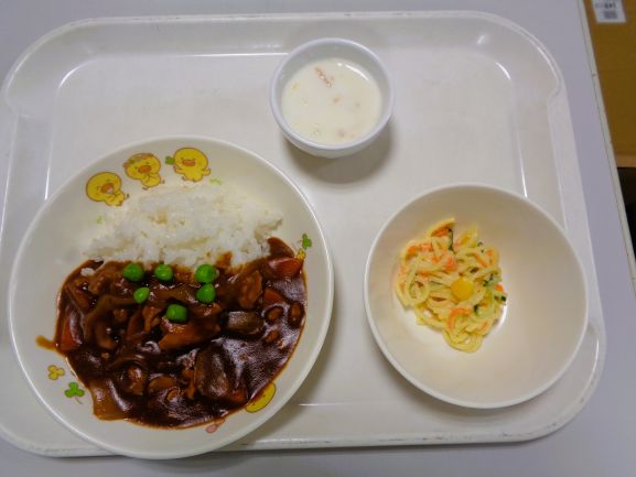 ハヤシライス・スパゲティサラダ・フルーツヨーグルト