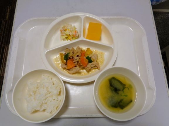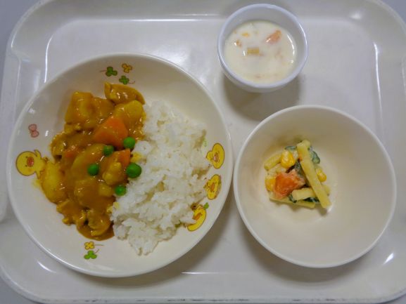 チキンカレー・マカロニサラダ・フルーツヨーグルト