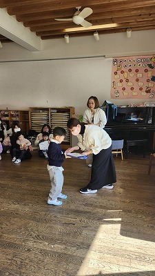 2歳児親子プレスクール「どんぐり組」の修了式を迎えました。
