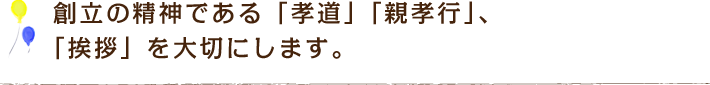 雲雀丘学園の初代理事長・鳥井信治郎は「親孝行な人はどんなことでもりっぱにできます」が口ぐせでした。 その思いを受け継ぎ、私たちは今も親を大切に思い、敬う心を育む人間教育を第一としています。 そして、人間教育のひとつとして、「挨拶」の重要性を子どもたちに伝え、その実践につとめています。 園内にはいつも、子どもたちの元気なあいさつの声が響いています。