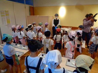 今週の英語のレッスンは、ハロウィンパーティーを行いました。手作りの衣装に着替えて、ホールで行いました。頭には、お化けカボチャやゴーストなど子どもたちの作った飾りをつけました。ハロウィンの衣装を身に付けて嬉しそうでした。 ホールではケビン先生やピーター先生と一緒に歌を歌ったり、ゲームをして遊びました。いつもよりたくさんのゲームをしたのでとても楽しんでいました。パーティーの最後に先生にお菓子も頂いて...