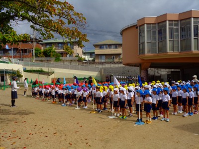 今日は、秋らしくさわやかなお天気でした。朝一番に、全クラスで運動会の入場行進の練習をしました。音楽に合わせて広い外を歩くのは気持ちがよく、笑顔で張り切って歩いていました。中でも年少さんは、年中長のお兄さん、お姉さんと一緒に歩くのが楽しいようで、とても嬉しそうに元気に歩いていました。行進の後の体操も、しっかり身体を動かして、張り切ってしていました。大勢のお友達と一緒に体操するのは、気持ちがよくて嬉し...