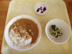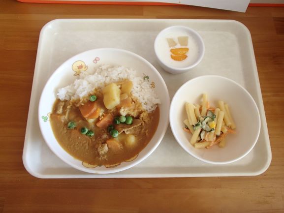 根菜カレー・ポテトサラダ・フルーツヨーグルト