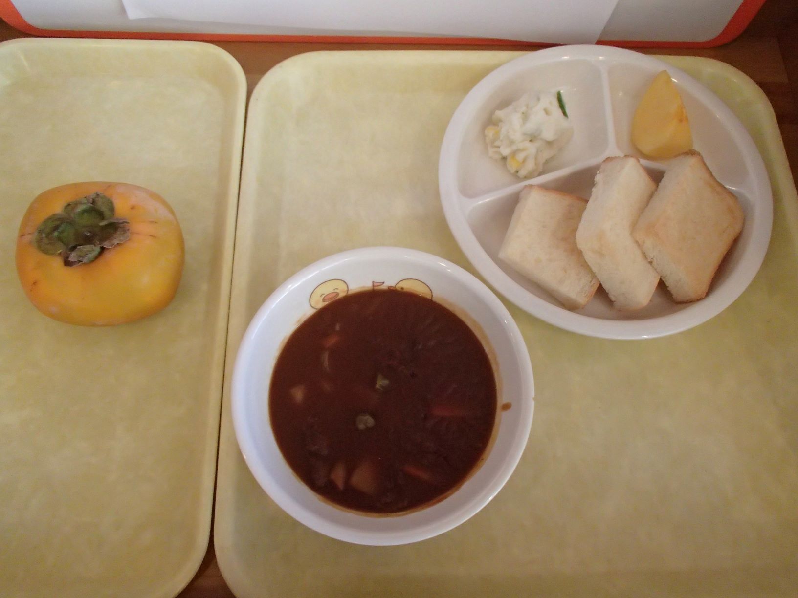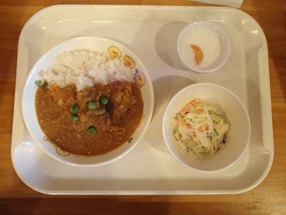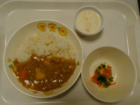 さつまいものひき肉カレー・ブロッコリーの彩りサラダ・フルーツヨーグルト