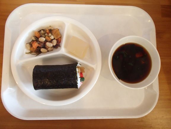 節分巻き寿司・カラフル五目豆・けんちん汁・りんごゼリー