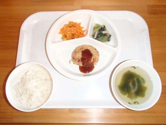 玄米ごはん・和風ハンバーグ・金平ごぼう・ぶどうゼリー・えのきとじゃがいもの味噌汁