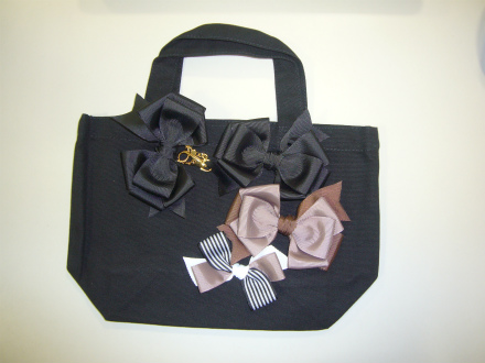 講師の先生の指導のもと、リボンを作り手提げ袋にデコレートするものですが、わかり易くするために