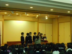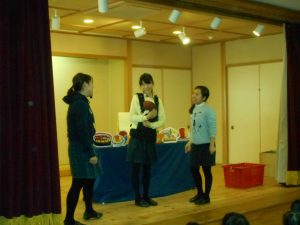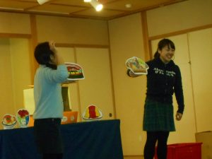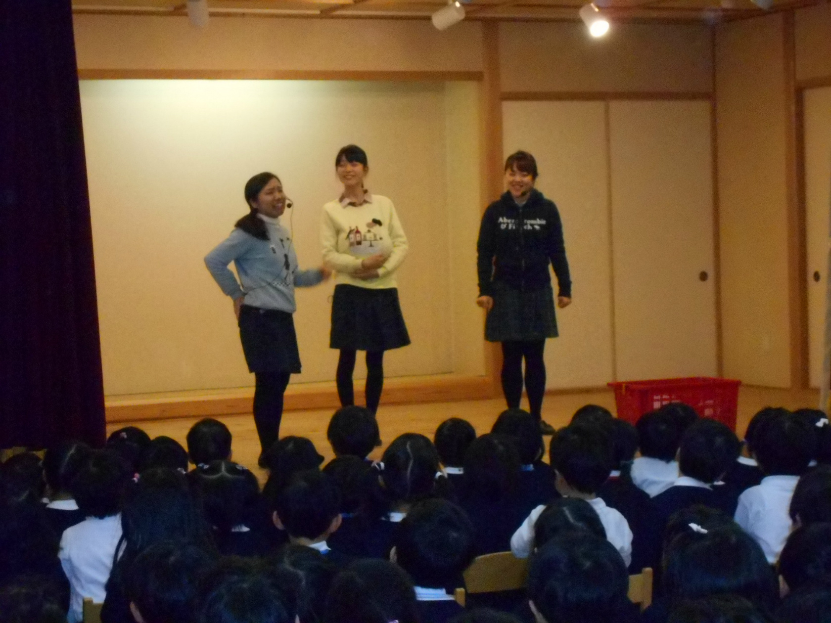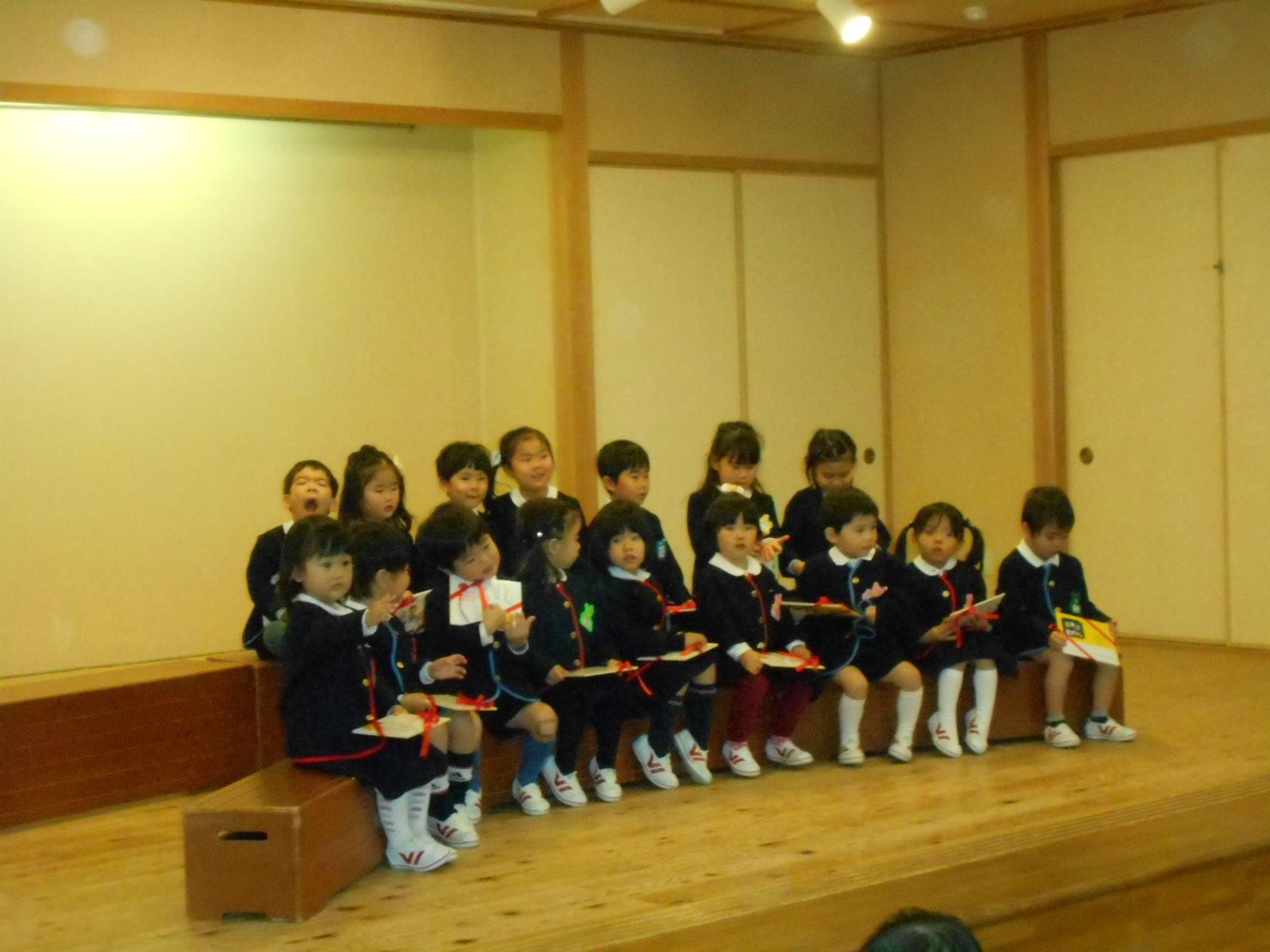 週末から一気に真冬の寒さになり、朝登園してくる子どもたちの息も白くなってきました。今日は、12月生まれのお友だちのお誕生日会がありました。年少さんは10名・年中さんは4名・年長さんは3名でしたが、2名のお友だちが残念ながらお休みでした。早く元気になってくださいね!お歌は年少「森のクリスマス」 年中「サンシャインクリスマス」 年長「うさぎ野原」を歌いました♪音楽会で歌った3曲どの学年の素敵な歌声を聴かせてくれました。先生の出しものは、「まほうの電子レンジ」でI先生のお父さん役が面白く皆笑って楽しく見入ってました♪魔法の電子レンジから沢山の美味しいご飯が出てきて、こんなレンジがあったら欲しい!!ですね♪おやつもショートケーキで喜んで食べていました。12月生まれのお友だちおめでとう♪素敵な1年になりますように♪すくすく大きくな~れ♪