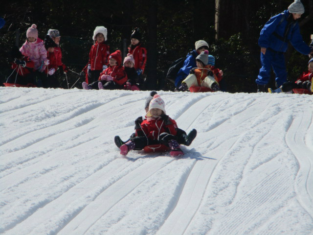 浮かべながら、何度も夢中になってそり滑りを楽しんでいました。 お昼ごはんは、毎回広い