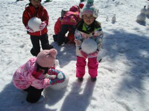 があり、そり滑りと同じくらい夢中になって雪だるま作りにみんなで励みました。