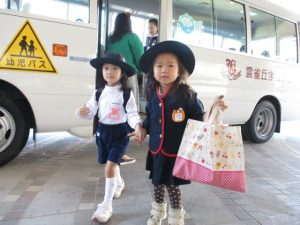 1. 通園バスから降りて自分の保育室へ向かう。(暫くは年中・年長のお兄さん・お姉さん