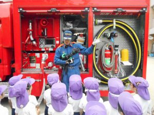 ▼消防車見学!かっこいいお仕事だね!