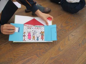 の生徒さんが知恵を絞り工夫を凝らした面白い絵本を子どもたちの前で、一人ずつ披露して