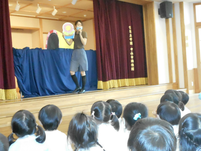今日のお誕生日会の先生の出しものは「変身トンネル」でした!