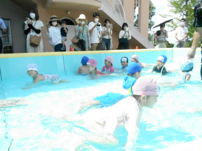 年少は延期となりましたが本日晴天に恵まれ、3学年無事にプール参観を終えることができました。