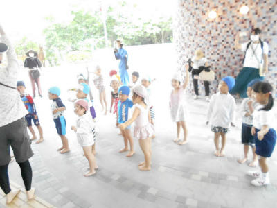 スイスイとワニ歩きや水のかけあいを楽しんでキャッキャッと大喜びでした♪