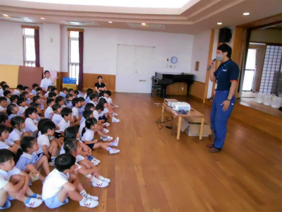 保育だより 7月7日(金) 年長組 幼年消防クラブ 「夏の危険について」