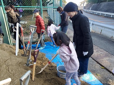 後半は予定していた土が足りなってしまいましたが、皆で広い園庭の落ち葉や枯れ枝集めをしてくださり