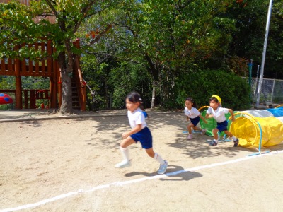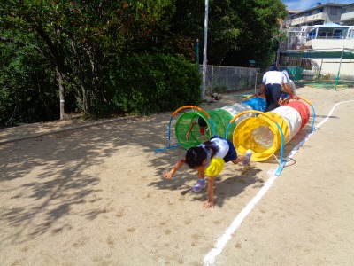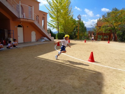 保育だより 10月7日(火) 年長組 障害物リレー最終練習