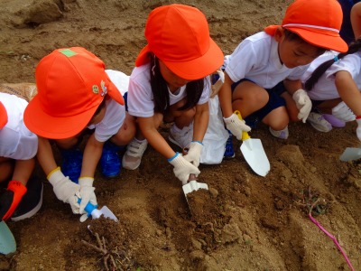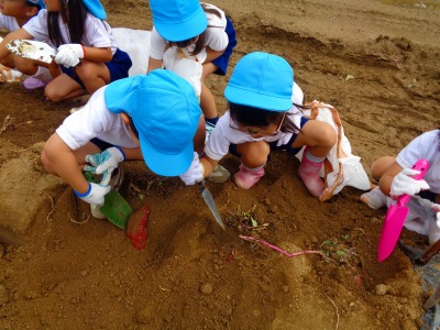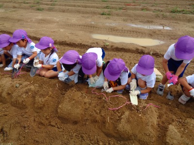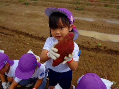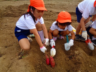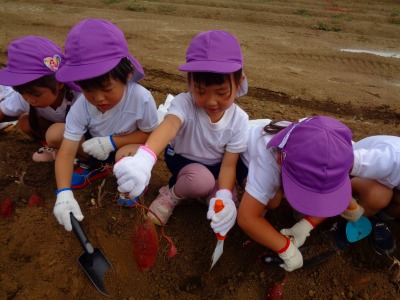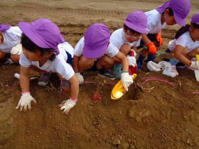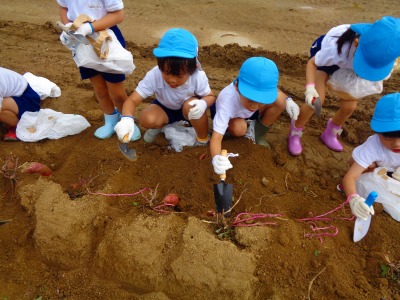 今日は年中組がお芋ほり遠足へ行ってきました。