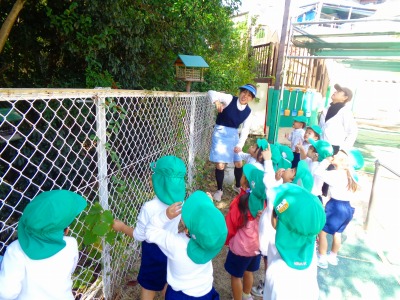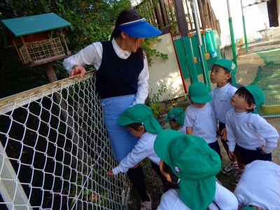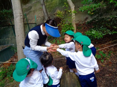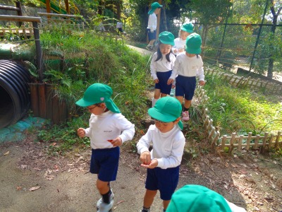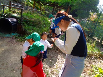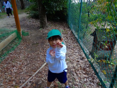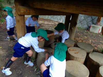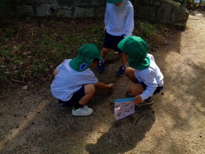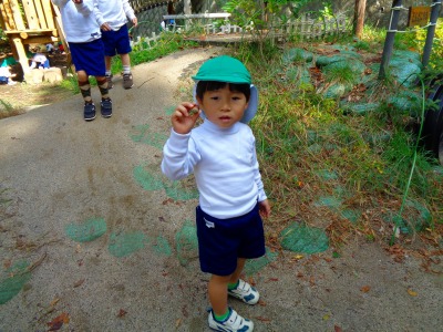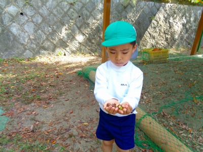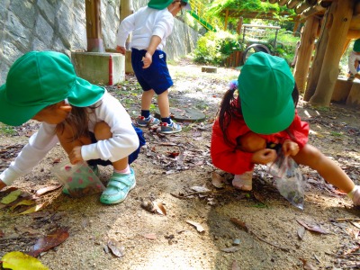 雨上がりの園庭は落ち葉やどんぐりがたくさんあり、