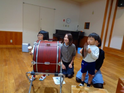 ▼年中組 ホールで音楽会の練習