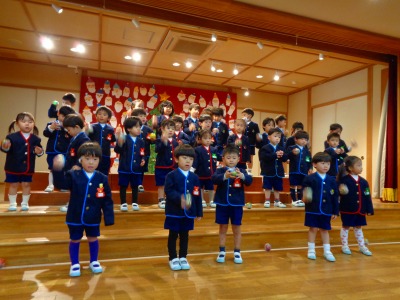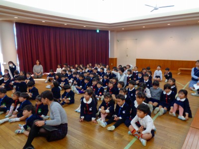 保育だより 11月17日(月) 年少組 音楽会の練習(年長さんの前で)