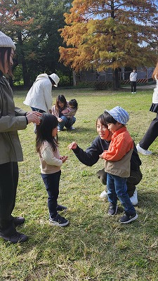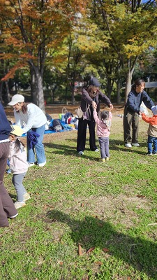 秋の自然に包まれながら、親子でゆったりと過ごしどんぐり組のお友だちと親睦を深めることもできて