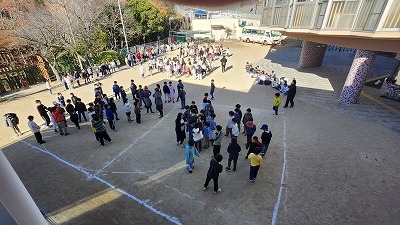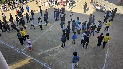 みんな胸を弾ませています。学年ごとのドッジボール大会が始まると、園庭は大盛り上がり!
