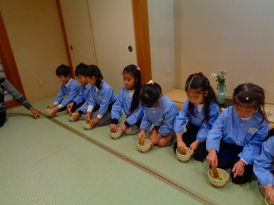 ▼年長組 くすのき組「お茶のお稽古」