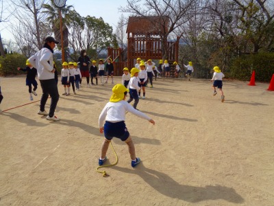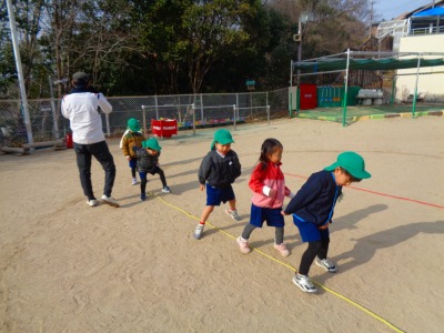 保育だより 1月15日(木) 年少(ばんび・らっこ)・年長 体育遊び
