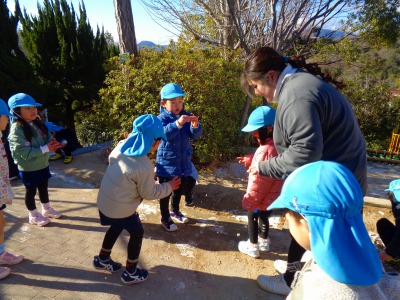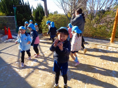 保育だより 1月22日(木) 「園庭で雪・氷あそび」