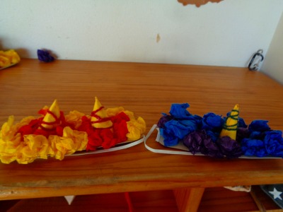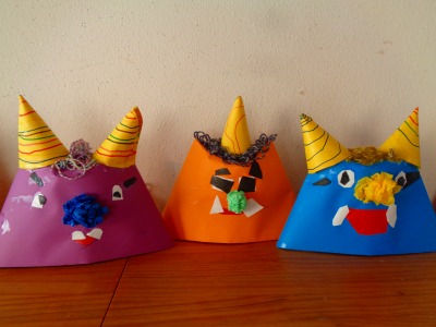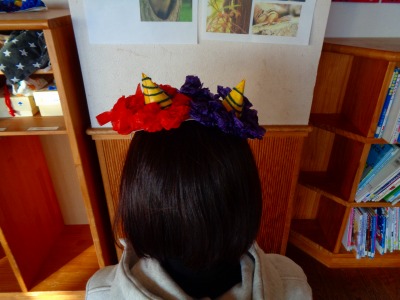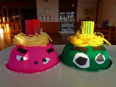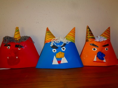 幼稚園では子どもたちが一生懸命に製作した鬼のお面が