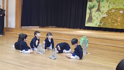 おしばいごっこを行いました。発表会では、3年間の成長過程も学年ごとに見られギュッと詰まった時間となりました。