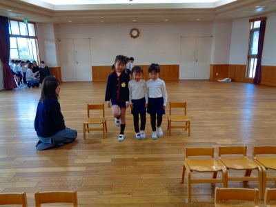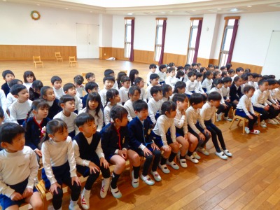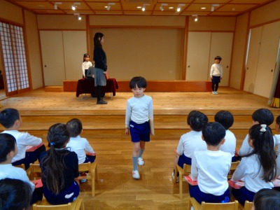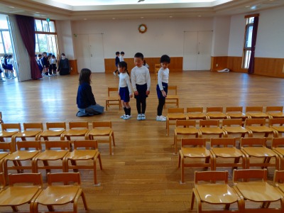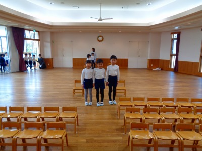今日は年長組さんがホールで