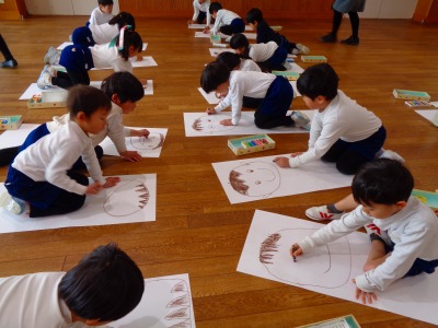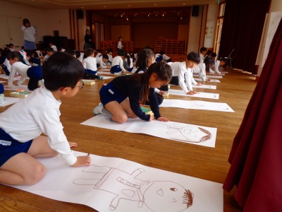 練習の後は年長組全員で「等身大の自分」の絵を