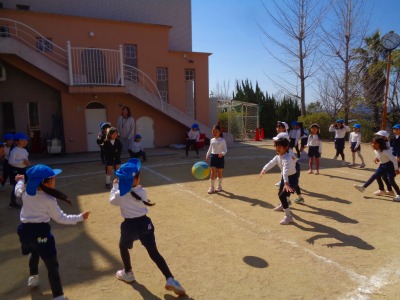 みんな一生懸命に逃げたりボールを投げたり…