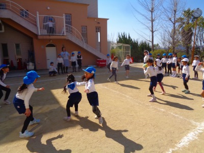 今日は年長組の最後の体育あそびがありました♪