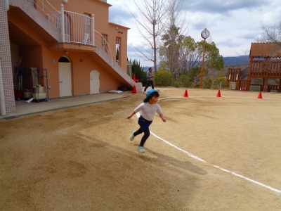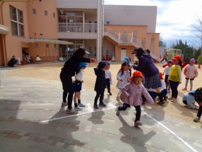 お友だちにタッチしてバトンをつないでいく事が