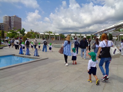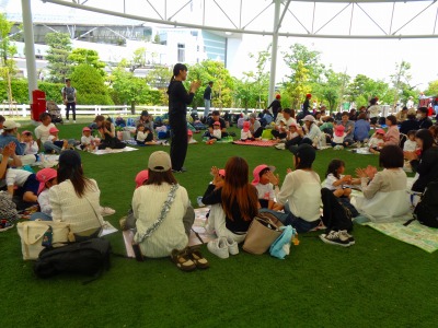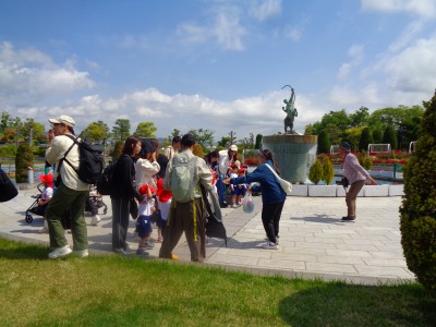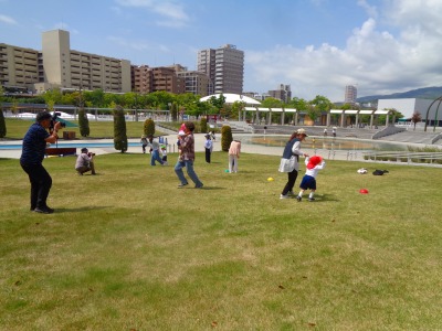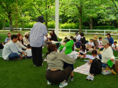 子ども達は笑顔でお家の方と一緒に公園内を散策したり、